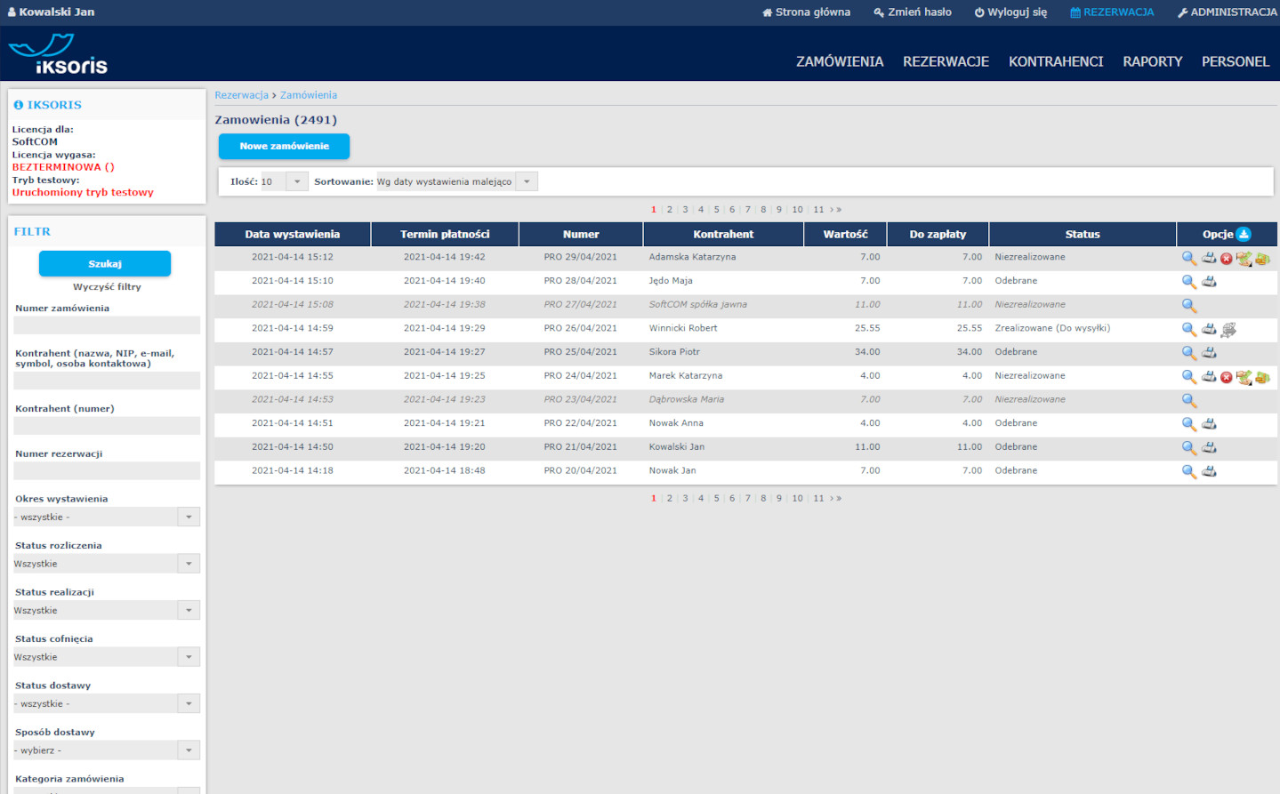 - zarządzanie rezerwacjami i zamówieniami (cofanie, usuwanie, tworzenie zamówień proforma, podgląd rezerwacji i utworzonych zamówień)